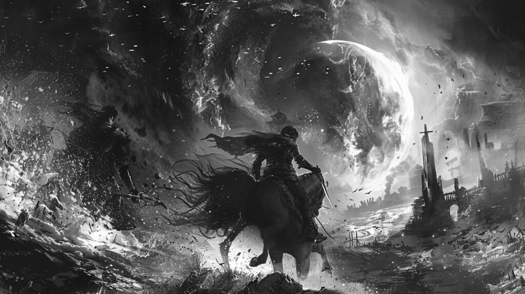 "Can't believe they're upping the war tax again. My gran says back in her day, you could actually see the sun before all these Dark Realm smoke monsters showed up."