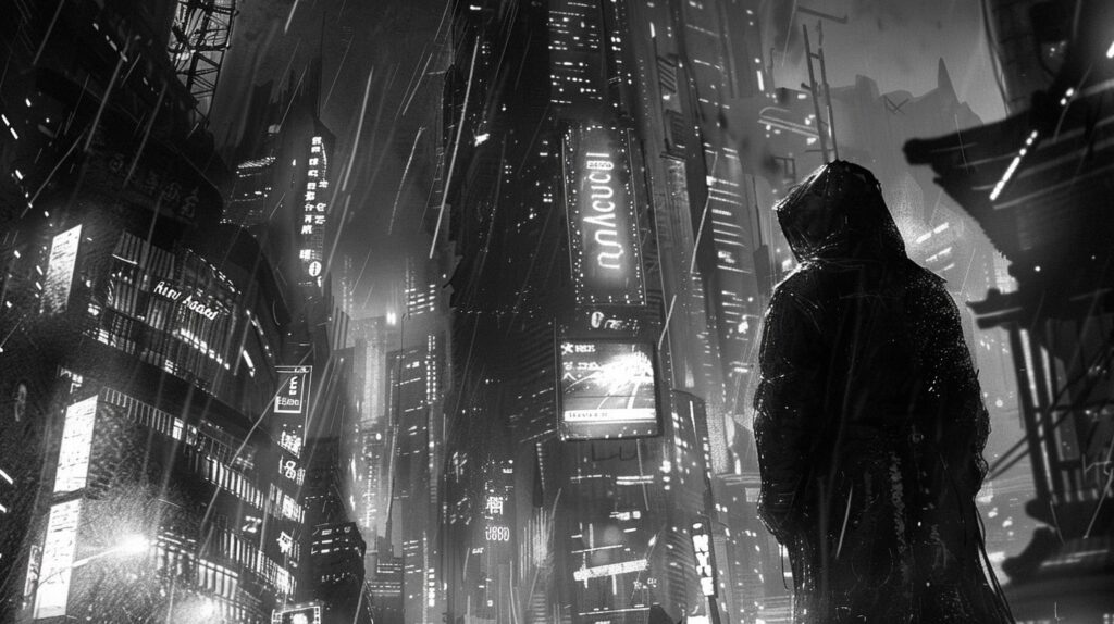 In cyberpunk noir, the setting often reflects a dystopian society where power is concentrated in the hands of a few, and inequality is rampant. These societies are marked by social unrest, corruption, and a stark divide between the haves and have-nots.